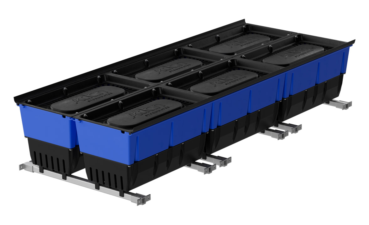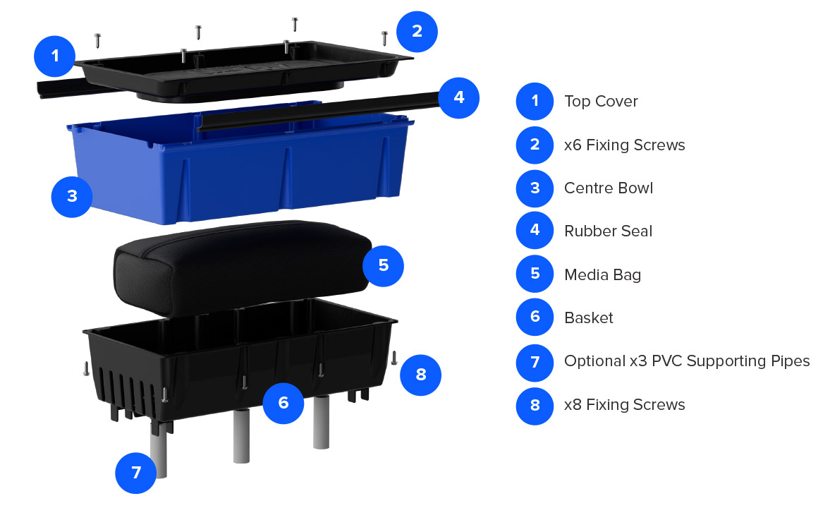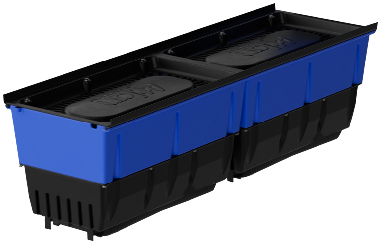 Fits into 300mm wide grated drains with a minimum depth of 450mm, ideal for at-source stormwater treatment.